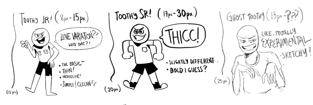 In this set, I've included two sized versions of my inking brush with very subtle changes to the texture for the appropriate size, an experimental sketching brush and a basic round pen brush for cleans!